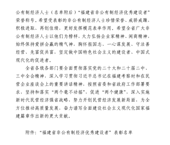 坚定做中国式现代化的促进者,积极响应省委省政府“新时代民营经济强省战略”号召,将这份集体荣誉感转化为磅礴动力,为谱写全面建设社会主义现代化国家福建篇章贡献更大的“时代电机”力量!